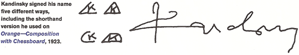 Whistler changed the way he signed his works with his name and monogram at least 12 times. Renoir and Warhol came up with eight versions; Matisse, seven; Picasso and Frida Kahlo, six; Kandinsky and de Kooning, five; Pollock and Rauschenberg, four.